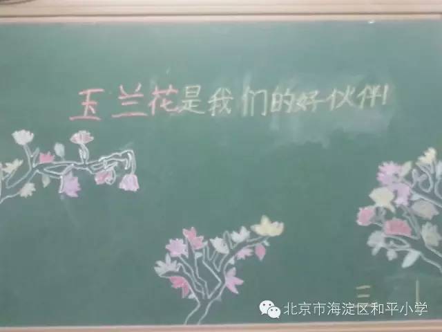 活动准备过程中,学生们积极发挥自己的聪明才智为本次玉兰诗词分享会设计了,“春暖玉兰开”“玉兰白如雪”“春天的玉兰”“玉兰花是我们的好伙伴”等活动主题,学生们还亲自动手,绘制了玉兰花的黑板报,为此次活动做了充足准备。