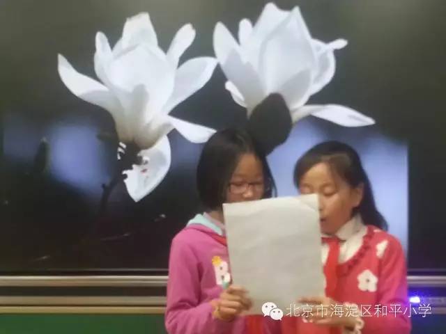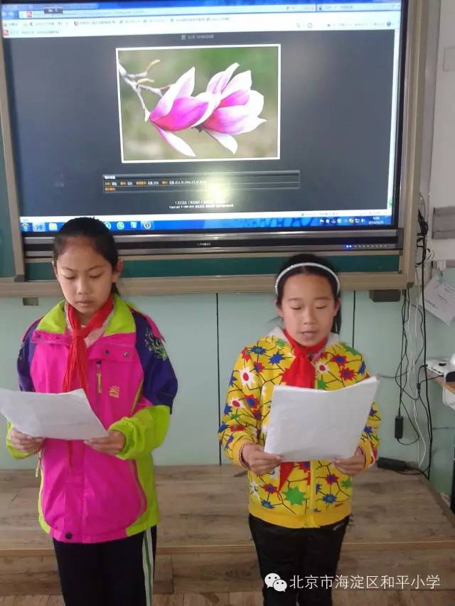 在活动的过程中,学生朗诵形式多样,有个人朗诵,有两人合作朗诵,还有小组表演朗诵。学生们在朗诵时抑扬顿挫,声情并茂。读到忘情之处,有的学生打起了节拍,为台上的朗诵者伴奏。有的学生唱起了《玉兰花》这首歌,与台上朗诵者相呼应。更有的学生摆出了玉兰花的造型,以表达自己对玉兰花的喜爱。