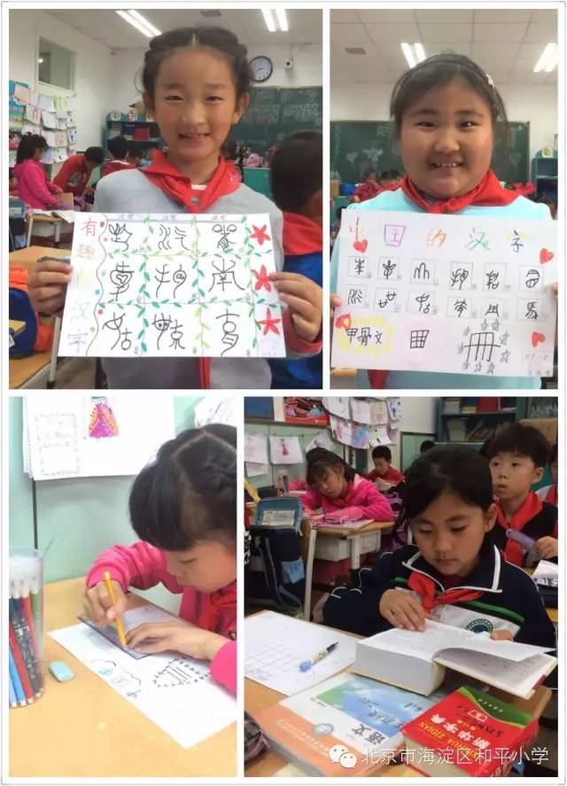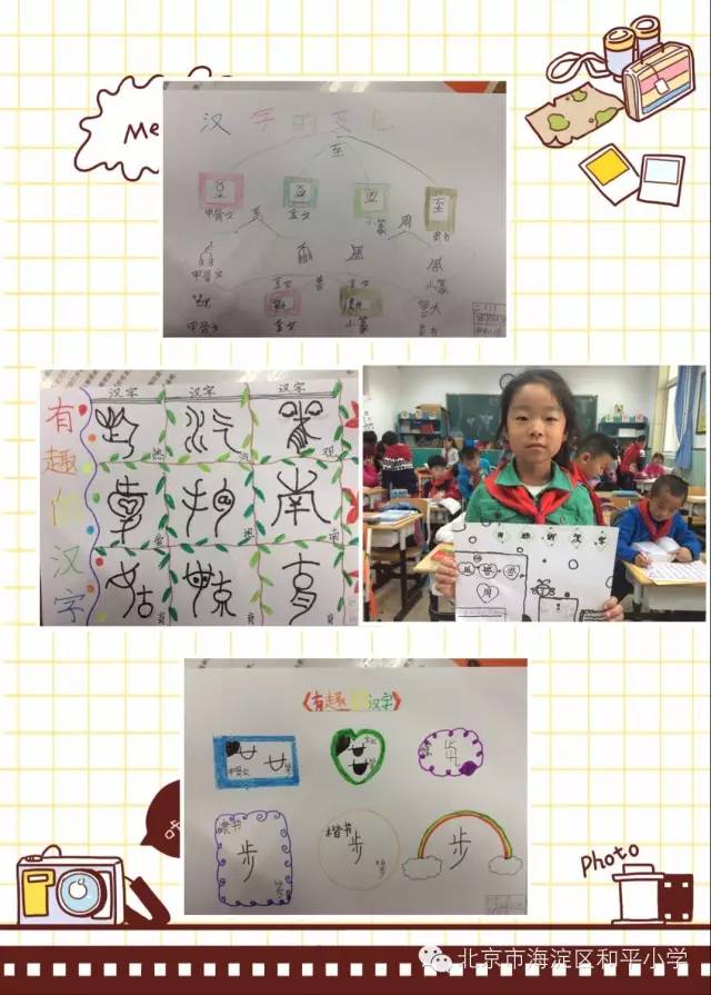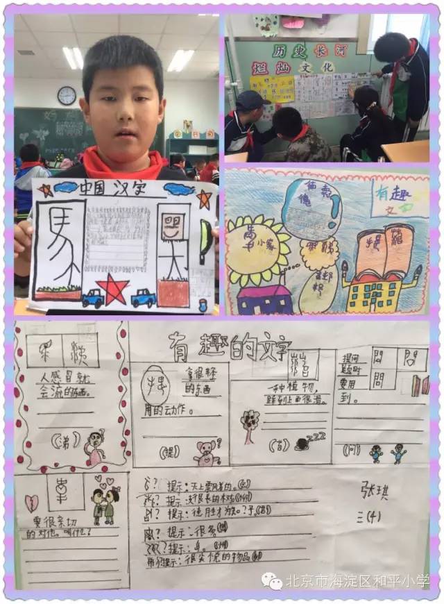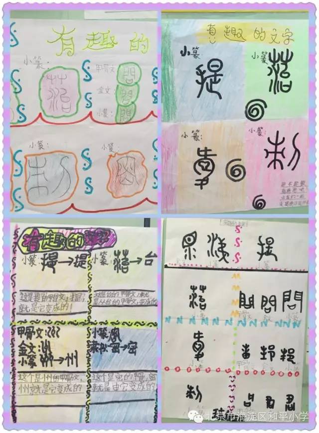 看,孩子们学得多带劲儿啊!经过老师的讲解,每一部分所代表的含义,真有趣啊!同学们听得津津有味,不但掌握了字源,还饶有兴趣地做成手抄报,把知识积累起来,知道了字源,就不会再出现错别字啦!