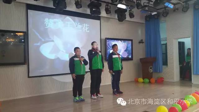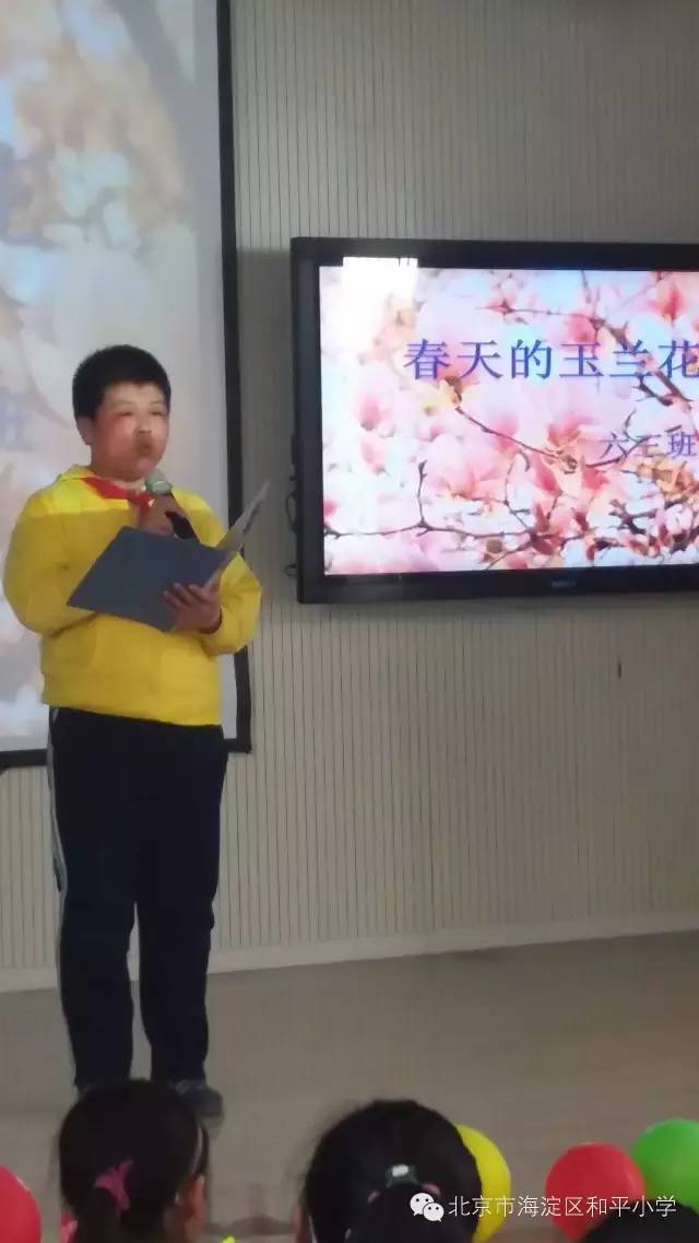 玉兰的开放象征着春天的到来,它的美,留在了每一个和平人心中。同学们用诗歌、散文、演讲等形式,配合着优美的乐曲,尽情地抒发对玉兰、对春天的热爱。