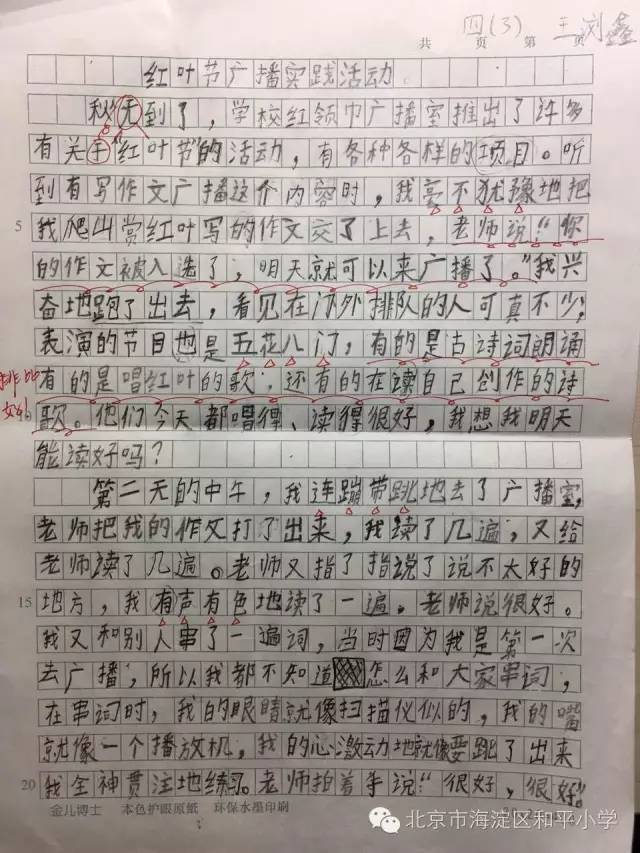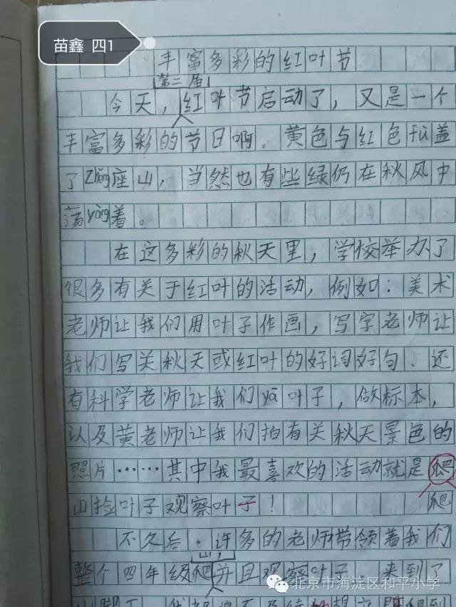 四年级语文老师在其他学科老师组织学生活动的基础上,进行了主题为“红叶”课程下的作文教学研究,11月17日上午,四年级的李雪娇和张莉冰两位新教师在于英杰老师和黄岩老师两位老师的指导下,分别展示了《作文指导课——说说红叶节》和《作文赏评课》。
