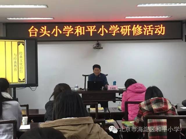 教师们仔细聆听于建福教授的讲座——“经典文化自信与经典教育”,体会传统文化的博大精深。于古,我们重温“欲人勿恶,必先自美;欲人勿疑,必先自信”的至理名言;于今,我们探究诺贝尔奖获得者屠呦呦的姓名来源——“呦呦鹿鸣,食野之蒿”……另外,于建福教授还向我们传达了习近平总书记对中华优秀传统文化的价值定位,为我们描绘了振兴中华传统文化的美好愿景。